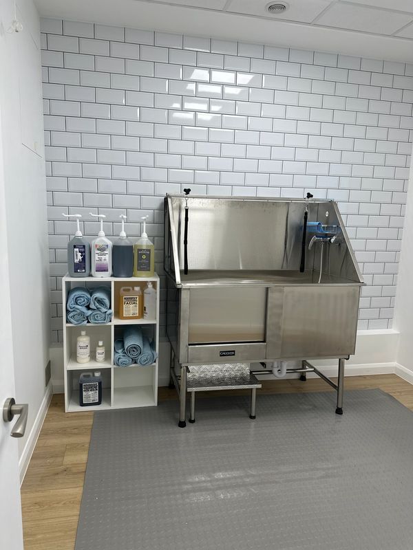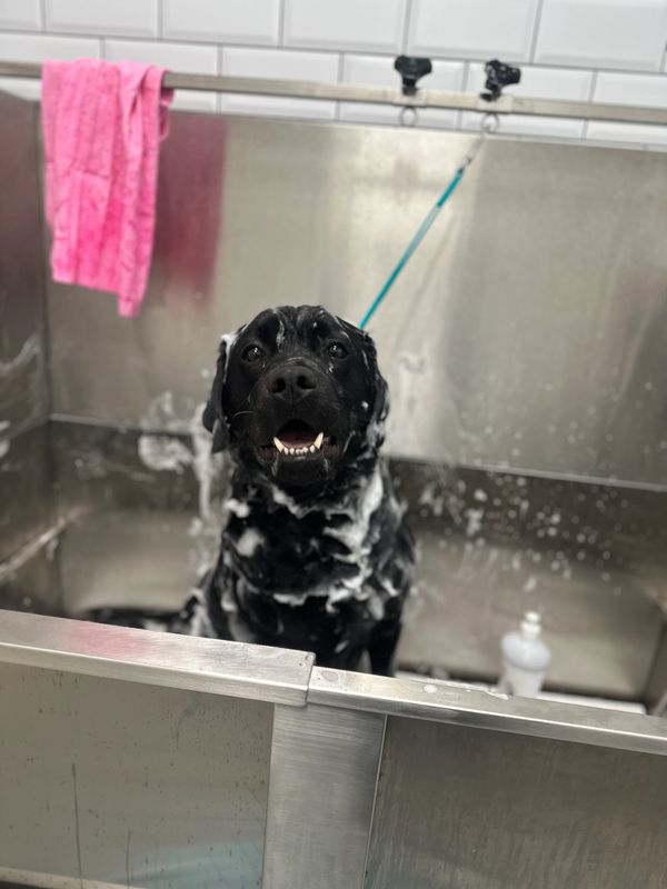 Bath and blow dry, de-shedding of undercoat, nails clipped, ears cleaned.
